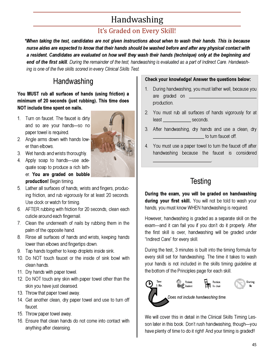 Follow along in your Skills Book, CNA Skills Study Guide 5th Edition Page 44-45.
